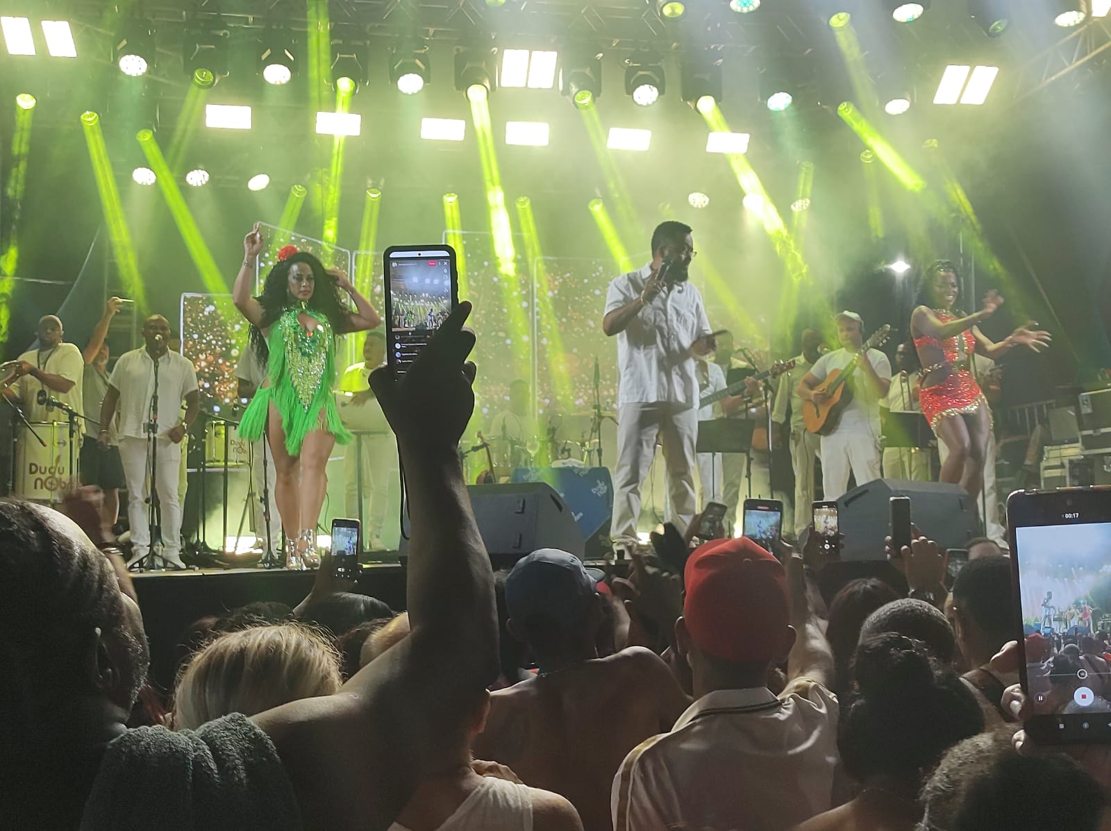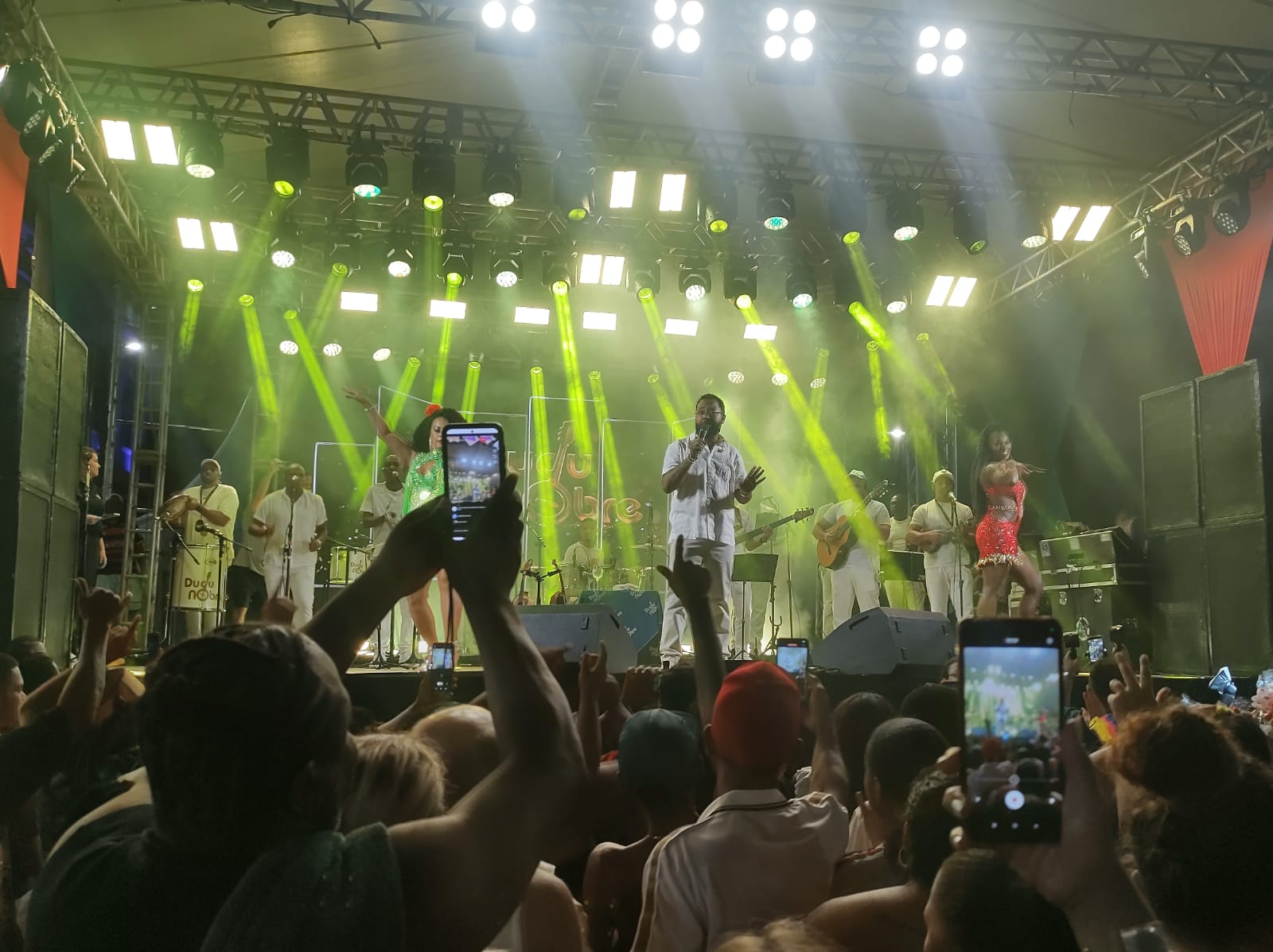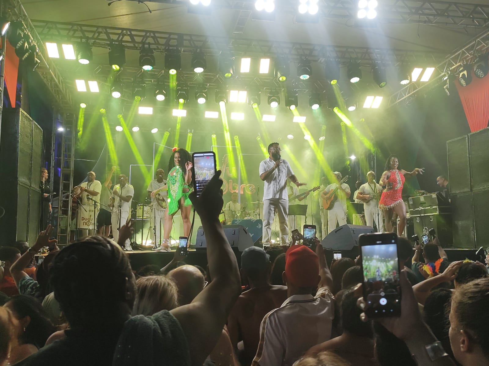O artista chegou à cidade já botando pra quebrar. A massa que estava frenética acompanhou o cantor em seu repertório musical reunindo clássicos do samba.